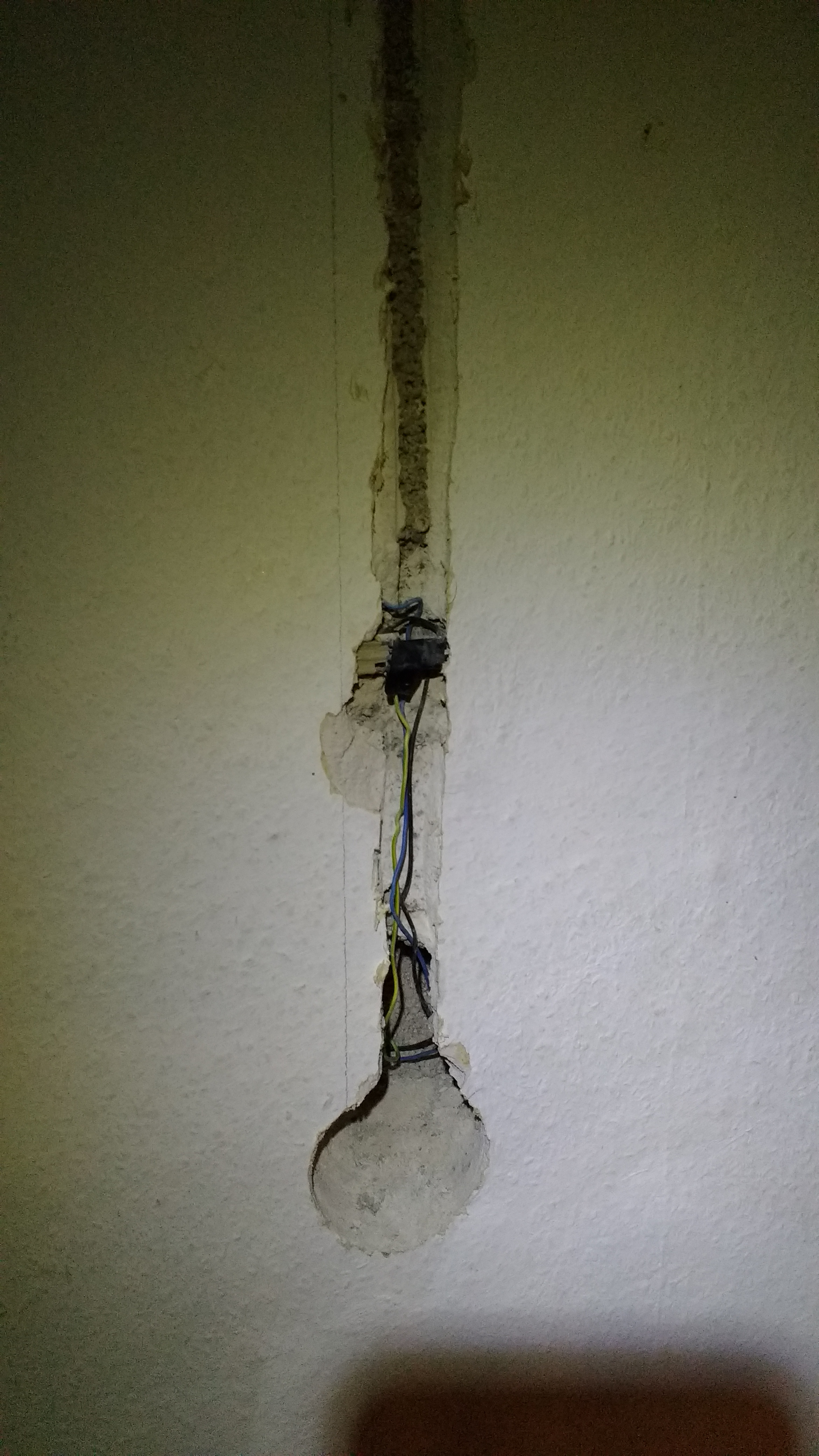 Beim vorsichtigen abmeiseln des Putzes bin ich dann auf das Kabel gestossen, welches nach oben führt…
