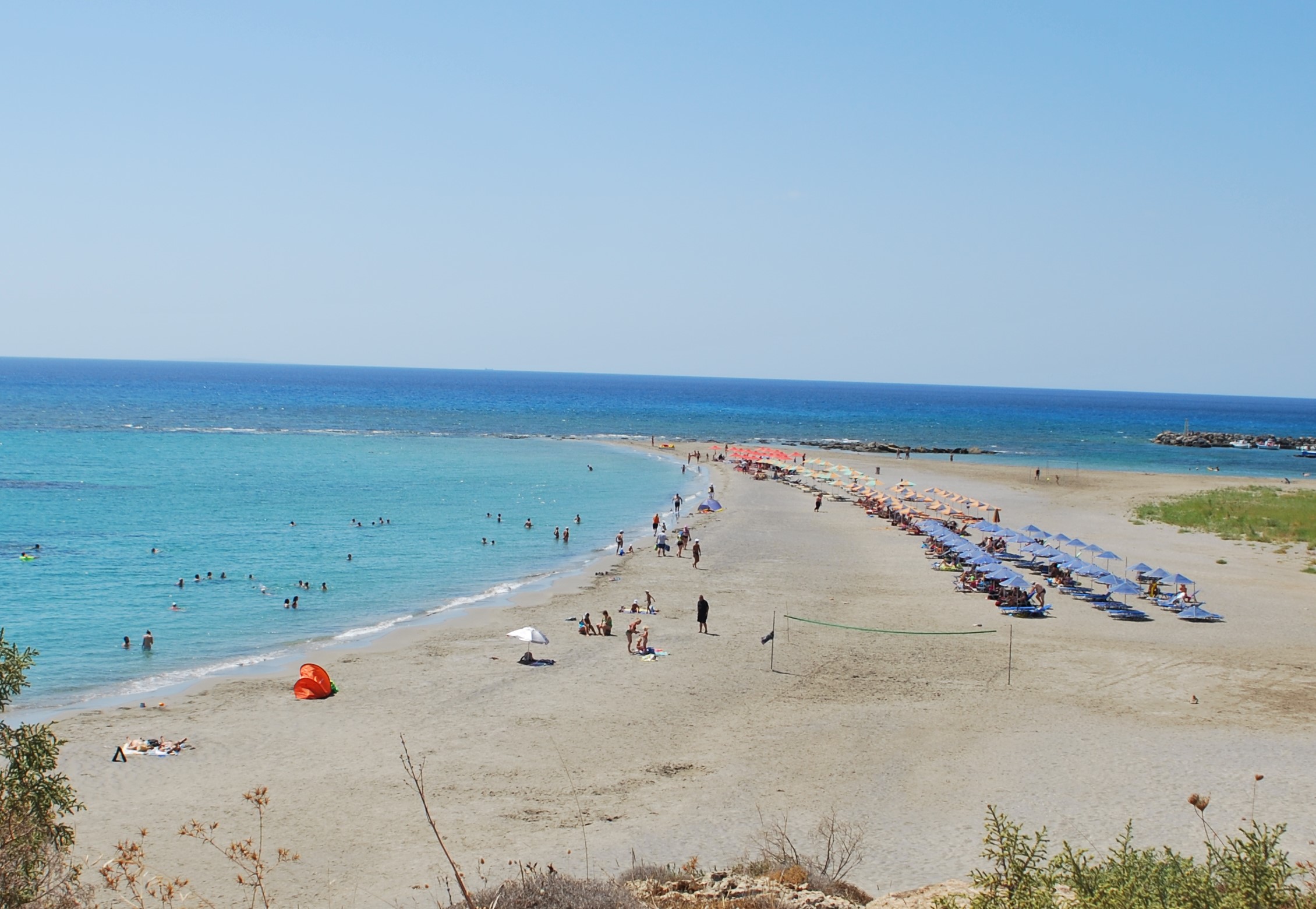 Wir sind quer durch die Insel auf die Südseite nach FrangoKastello gefahren. Dazu gehts durchs Gebirge – mindestens auf 1000m hoch. Die meisten Straßen sind klein und eng, insbesondere die Ortsdurchfahrten sollten vorsichtig genommen werden. Wir sind dann an einem Sandstrand angekommen, der Weg ins Wasser ging nicht über Steine und Felsen.